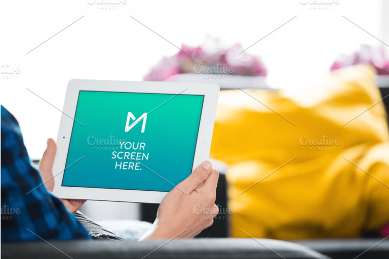 Bring Your Designs to Life in a Real-World Environment Transform your digital projects into compelling visual stories with this immersive Apple iPad 4 Retina mockup, perfectly placed in a colorful, modern living room setting. Designed for creators who value realism…