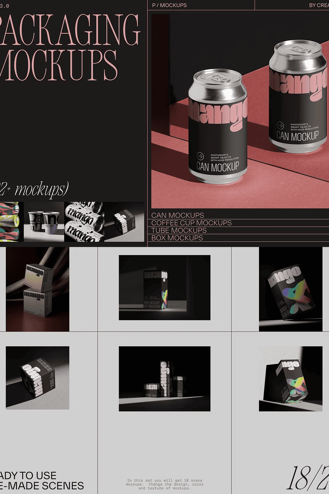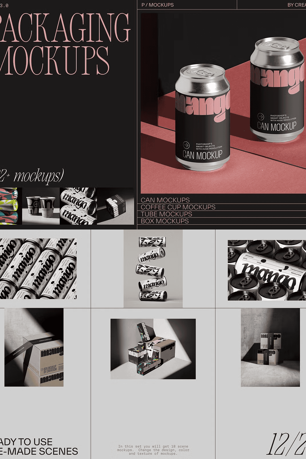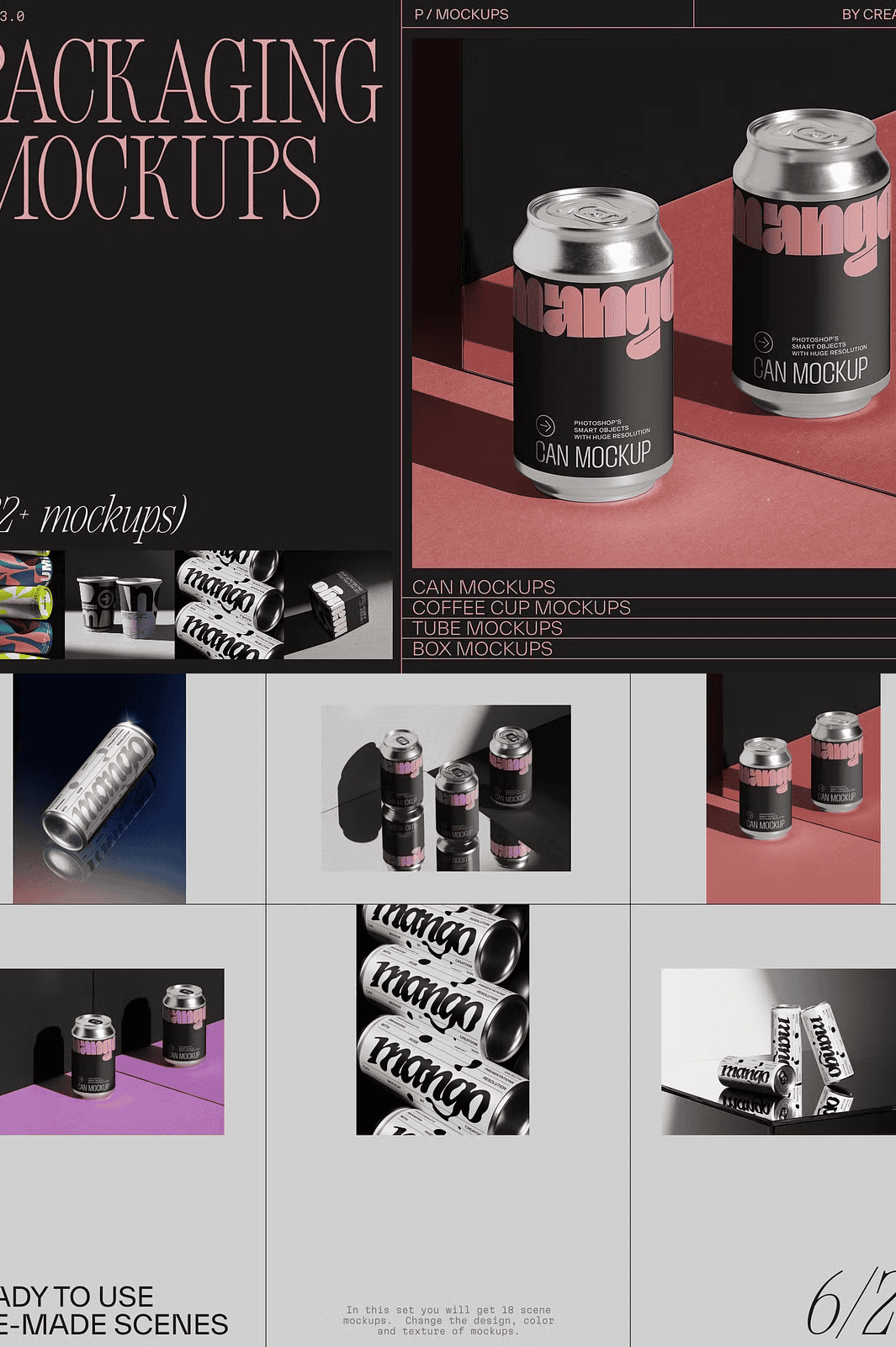 - 104 Isolated Product Mockups: Each product is presented as a separate, fully layered PSD file—ready for quick replacement, color adjustment, and texture customization using smart objects.