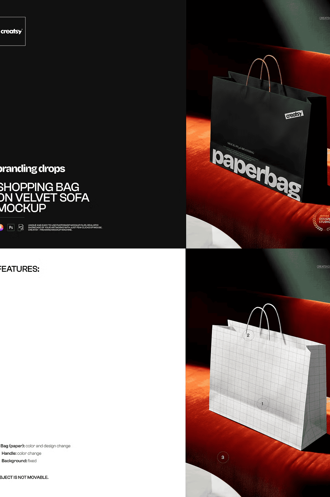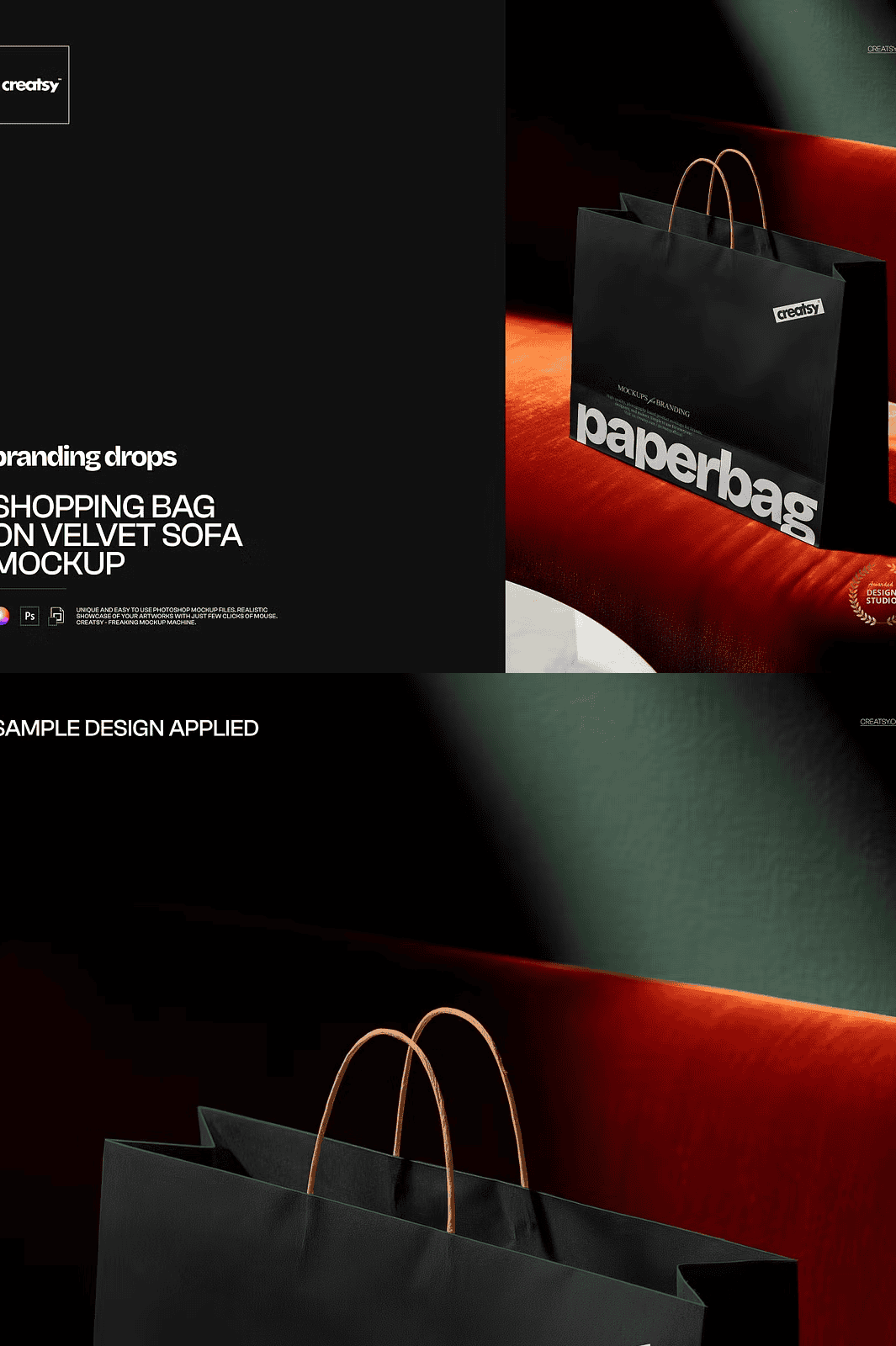 Whether you’re a freelance designer, part of a branding agency, or a small business owner building your visual identity, the Shopping Bag on Velvet Sofa Mockup delivers immediate, high-caliber results. It’s not just a template—it’s a complete creative tool that removes the friction between idea and execution.