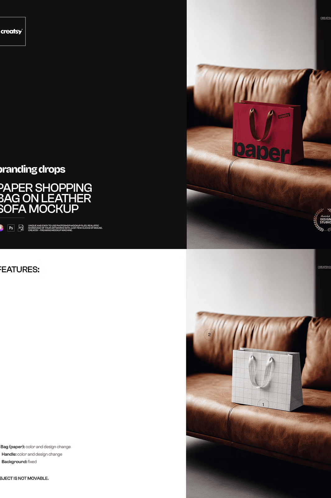 Deliver professional-grade visual presentations that feel alive and tangible with the Paper Shopping Bag on Leather Sofa Mockup, a meticulously crafted PSD file designed for maximum realism and creative flexibility. Every element is captured from actual interior environments—**no AI-generated imagery**—ensuring your brand’s packaging looks perfectly at home in a high-end living space, boutique, or design studio. This mockup transforms your static designs into immersive visual experiences that resonate far more powerfully than generic templates.