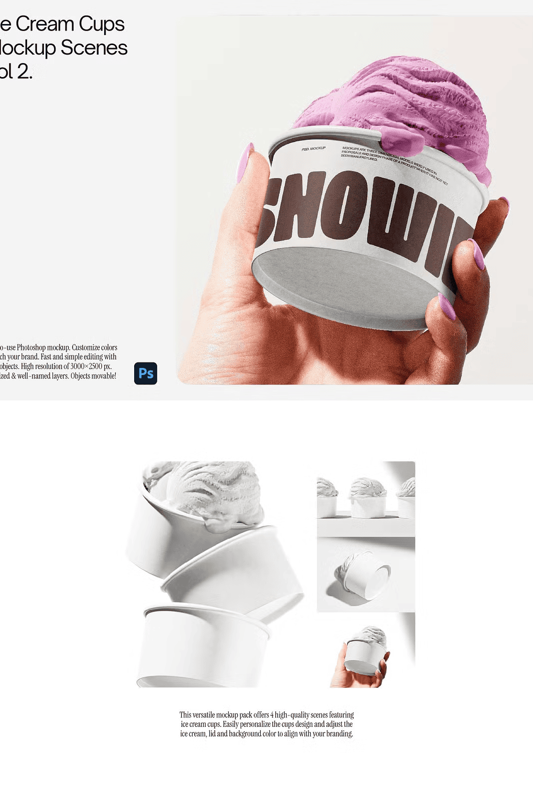 - Color-Adjustable Elements: Fully customize the ice cream scoop hues, lid colors, and background tones to align with your brand palette. Match your colors exactly, ensuring consistency across all visual materials.