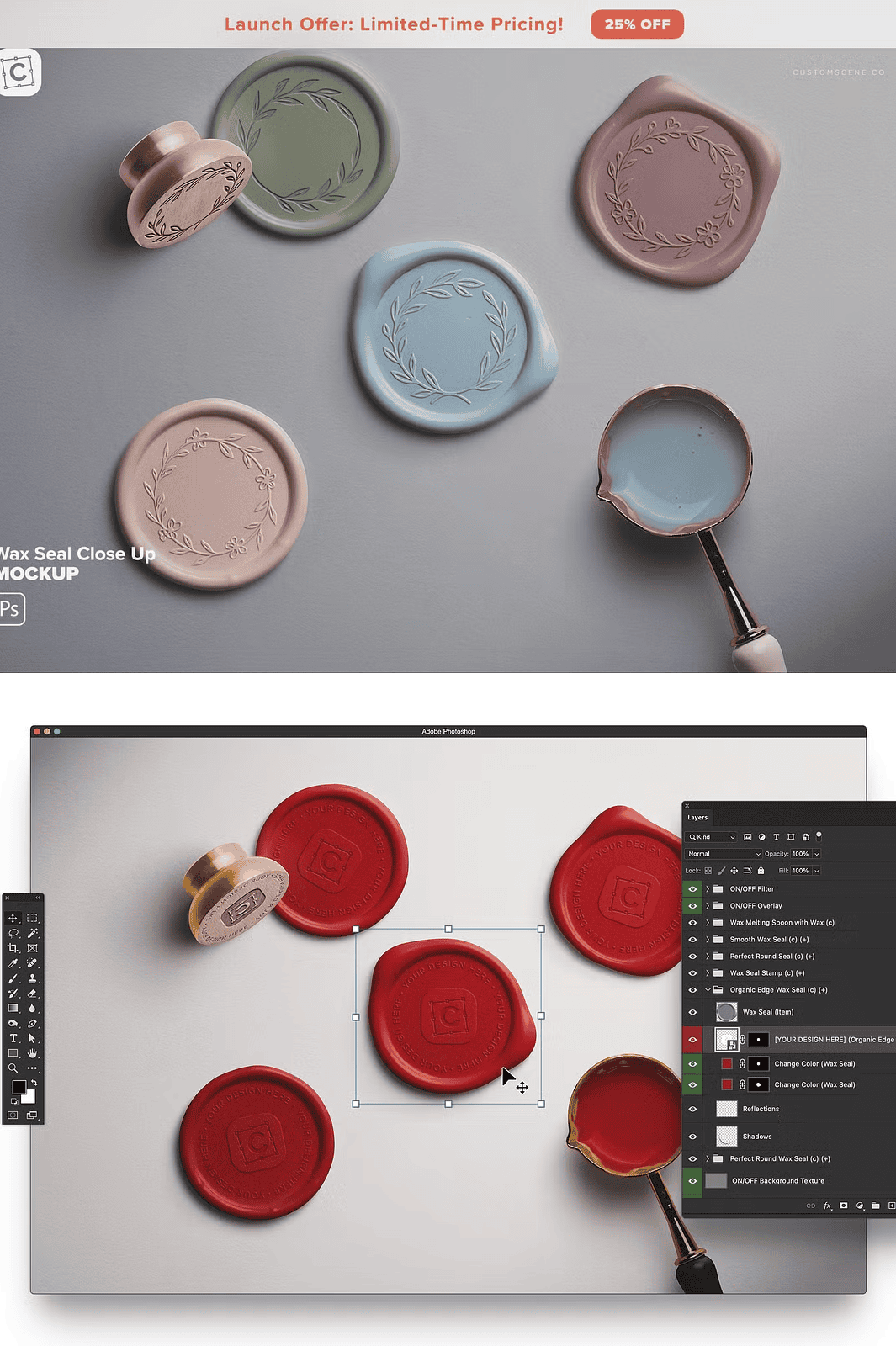 • Print & Packaging Design: Preview your final product with real-world context. Simulate how your wax seal will look on boxes, labels, envelopes, and certificates before going to press.