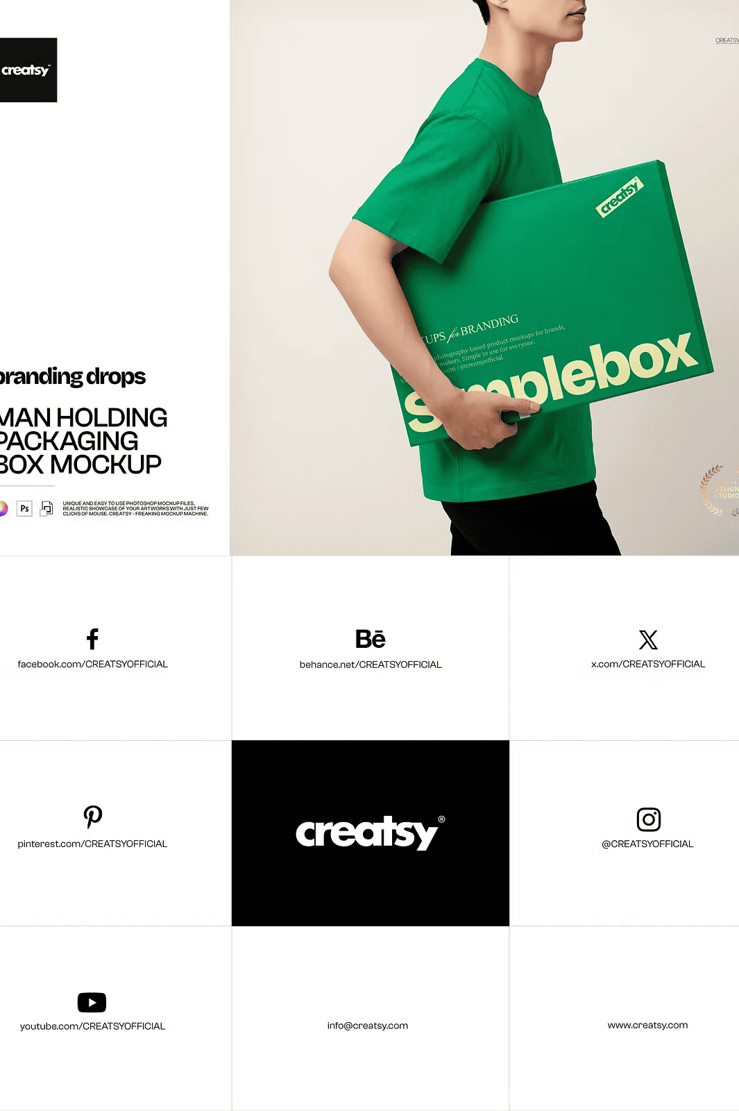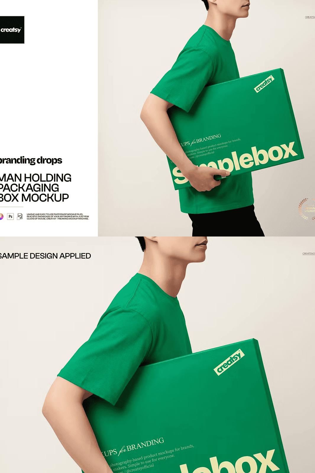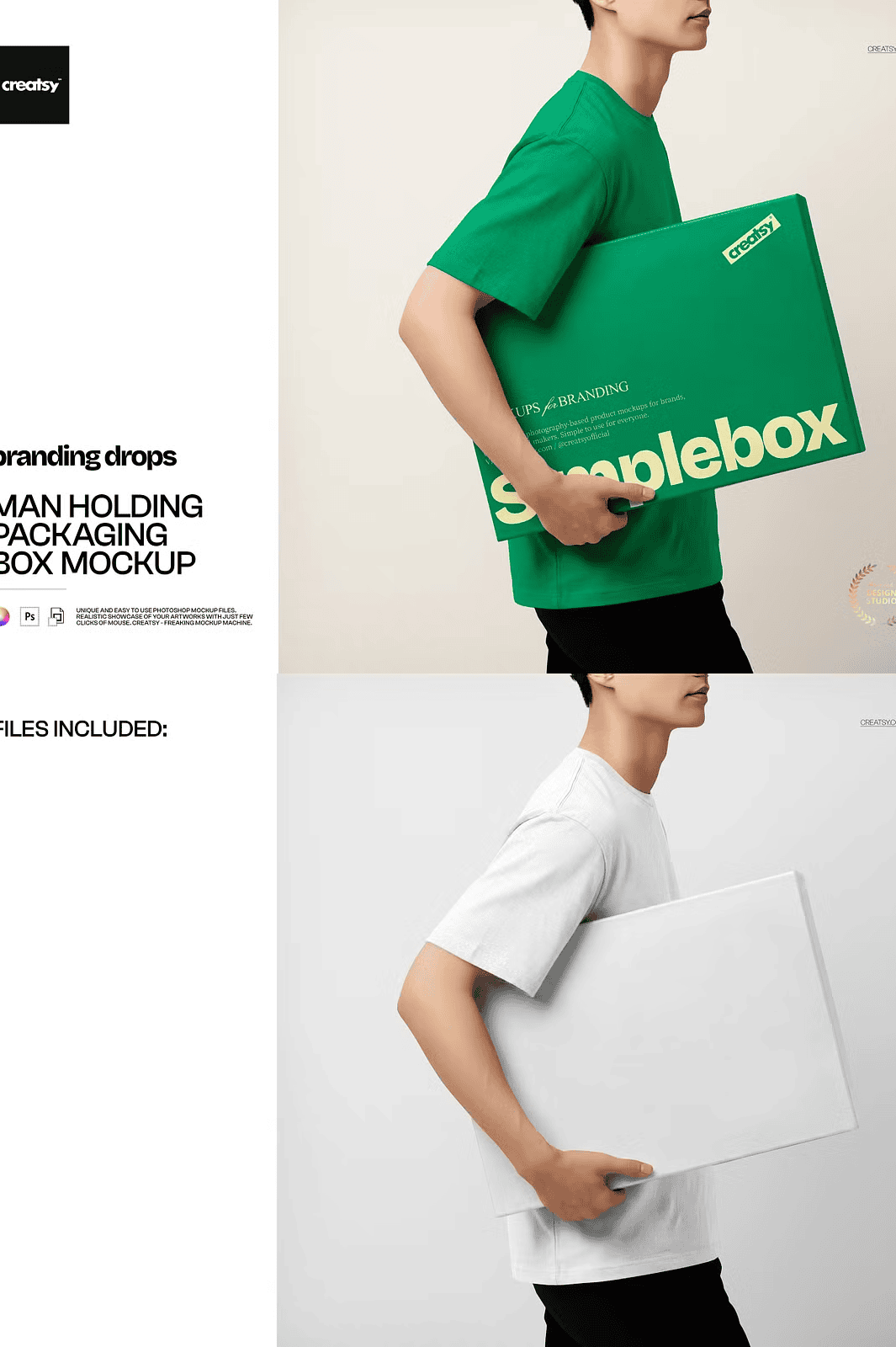- Realistic Human Figure with Dynamic Grip: The model holds the box with a natural, balanced posture, creating a sense of real-world interaction that enhances perceived value and trustworthiness in your product.