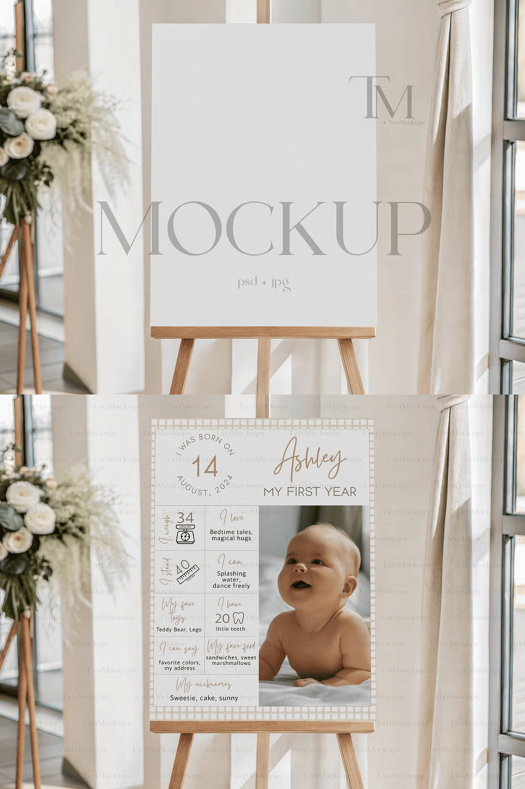 Licensing Note: This product is licensed for personal and commercial use across unlimited projects. You may not resell, redistribute, or use the mockup files to train AI models. © 2025 TatiMockups®. All rights reserved.