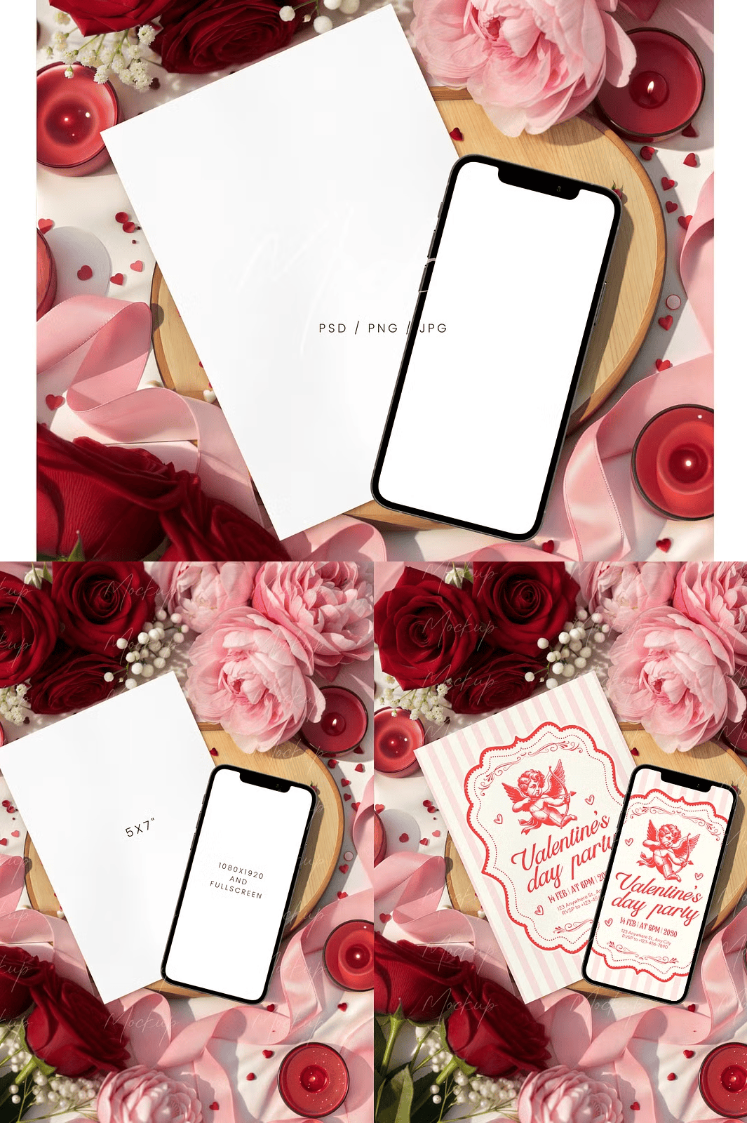 - Layer-Organized & Fully Editable: Every component—from rose petals and candle flames to ribbon folds and phone reflections—is independently controlled, enabling precise adjustments for lighting, positioning, and style.