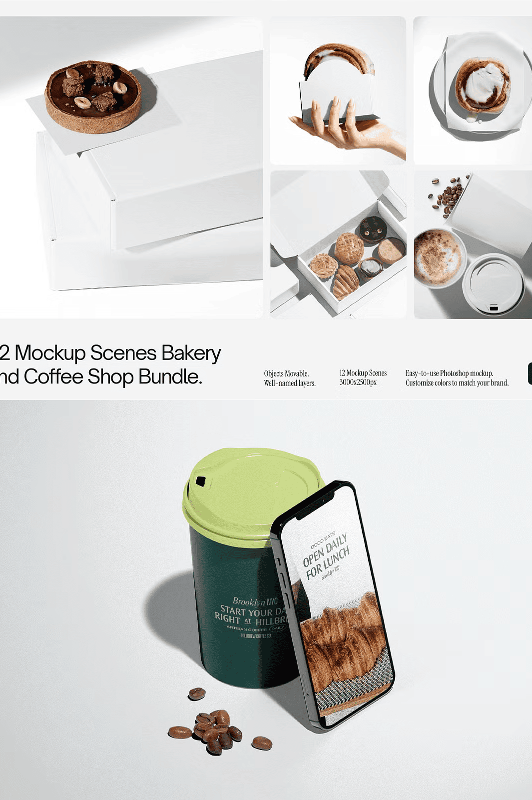 - To-Go Coffee Cup Mockups: Highlight your brand’s signature coffee designs with real world cup placements, including realistic lid and sleeve textures.
