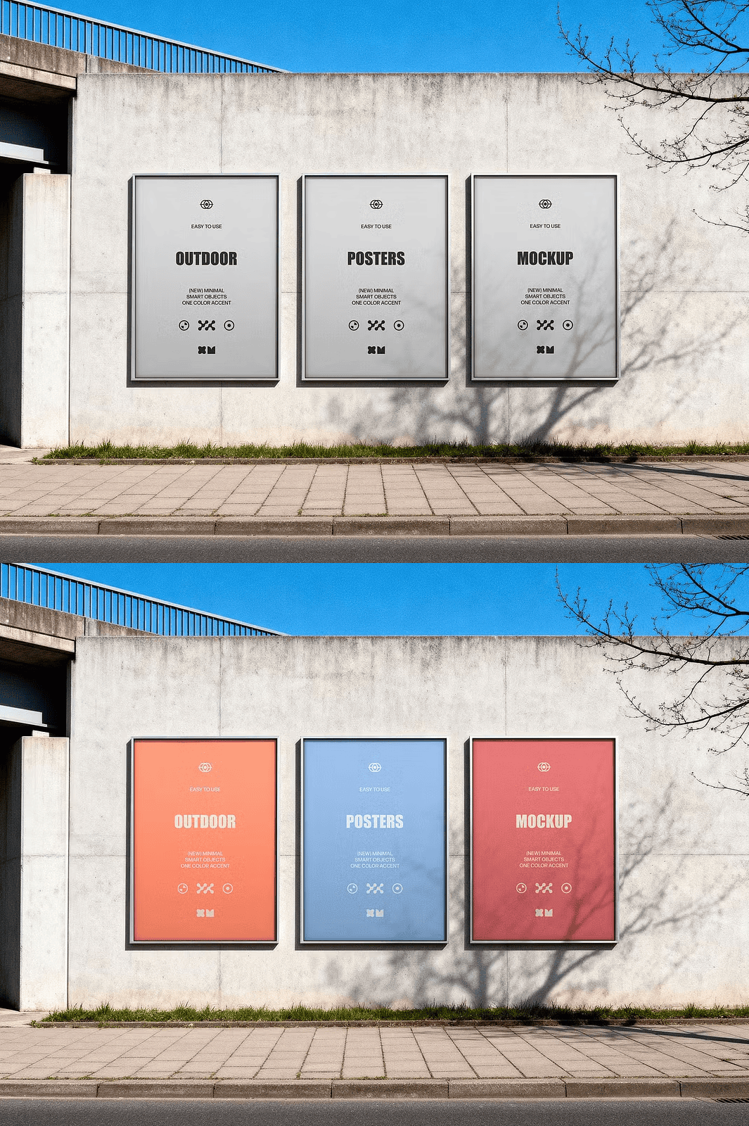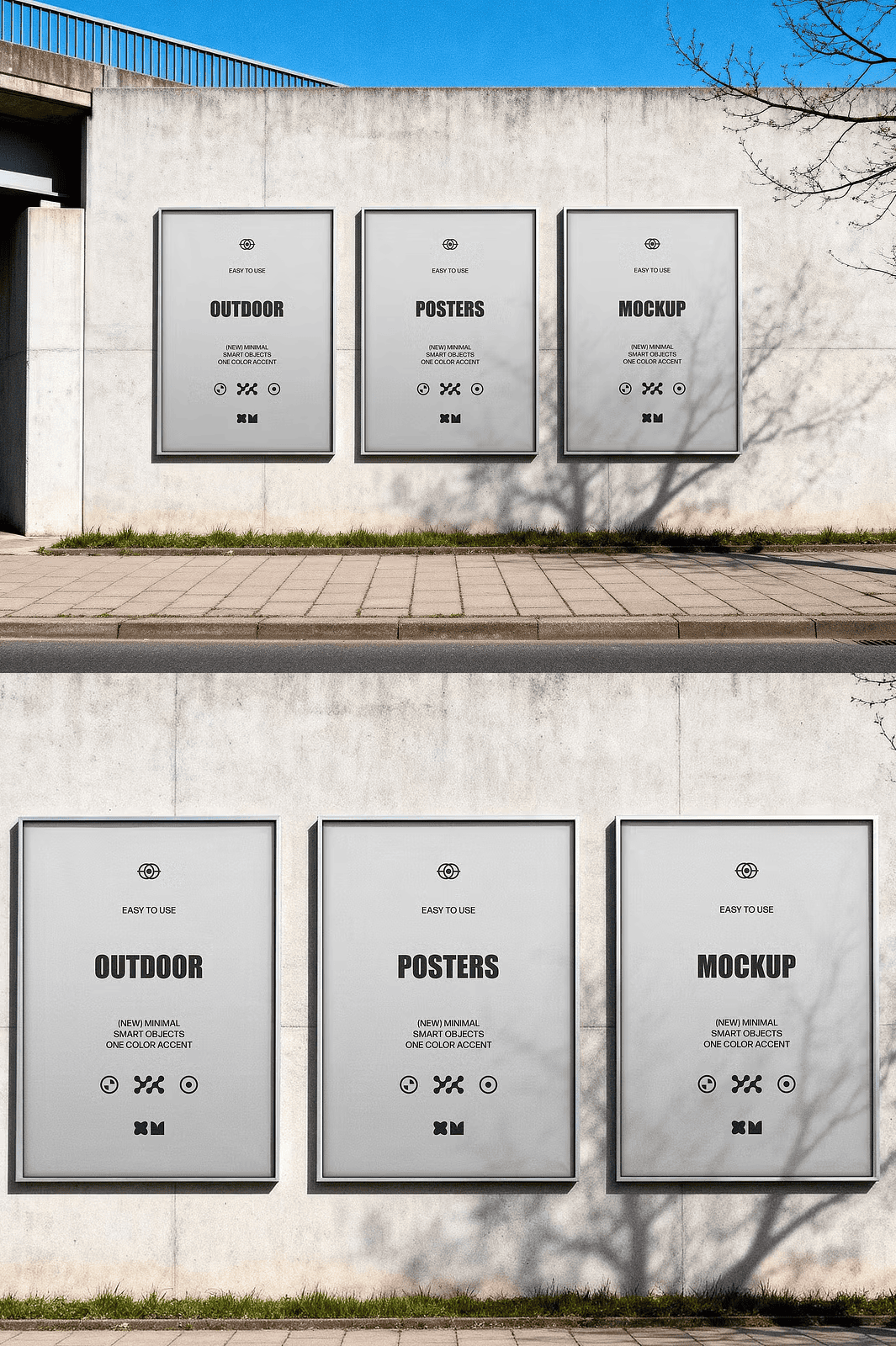 Bring your design projects to life with this meticulously crafted Three Outdoor Posters Mockup. Whether you want to display your creative work in a portfolio or present your product to clients, this mockup offers exceptional realism with clean rendering and detailed shadows. The high resolution ensures your artwork stands out with crisp clarity and vibrant colors, giving a natural, professional look that strengthens your presentation’s impact.