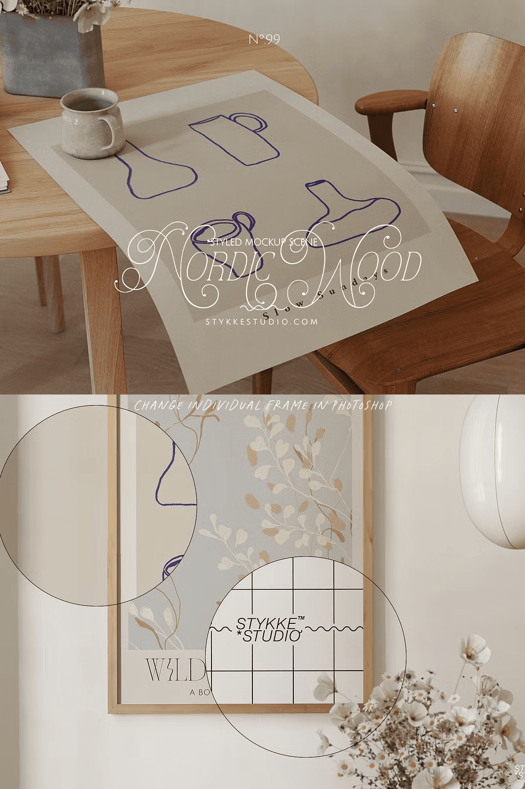 Use this mockup to strengthen your presentation, build an authentic brand identity, or elevate your portfolio to a professional standard. Whether you’re an independent artist showcasing your prints, a design studio crafting client proposals, or a lifestyle brand selling wall art, the Nordic Wood NO.99 captures the essence of calm, intentional living. It’s not about flashy effects — it’s about the quiet power of a well-composed moment that speaks to the soul.