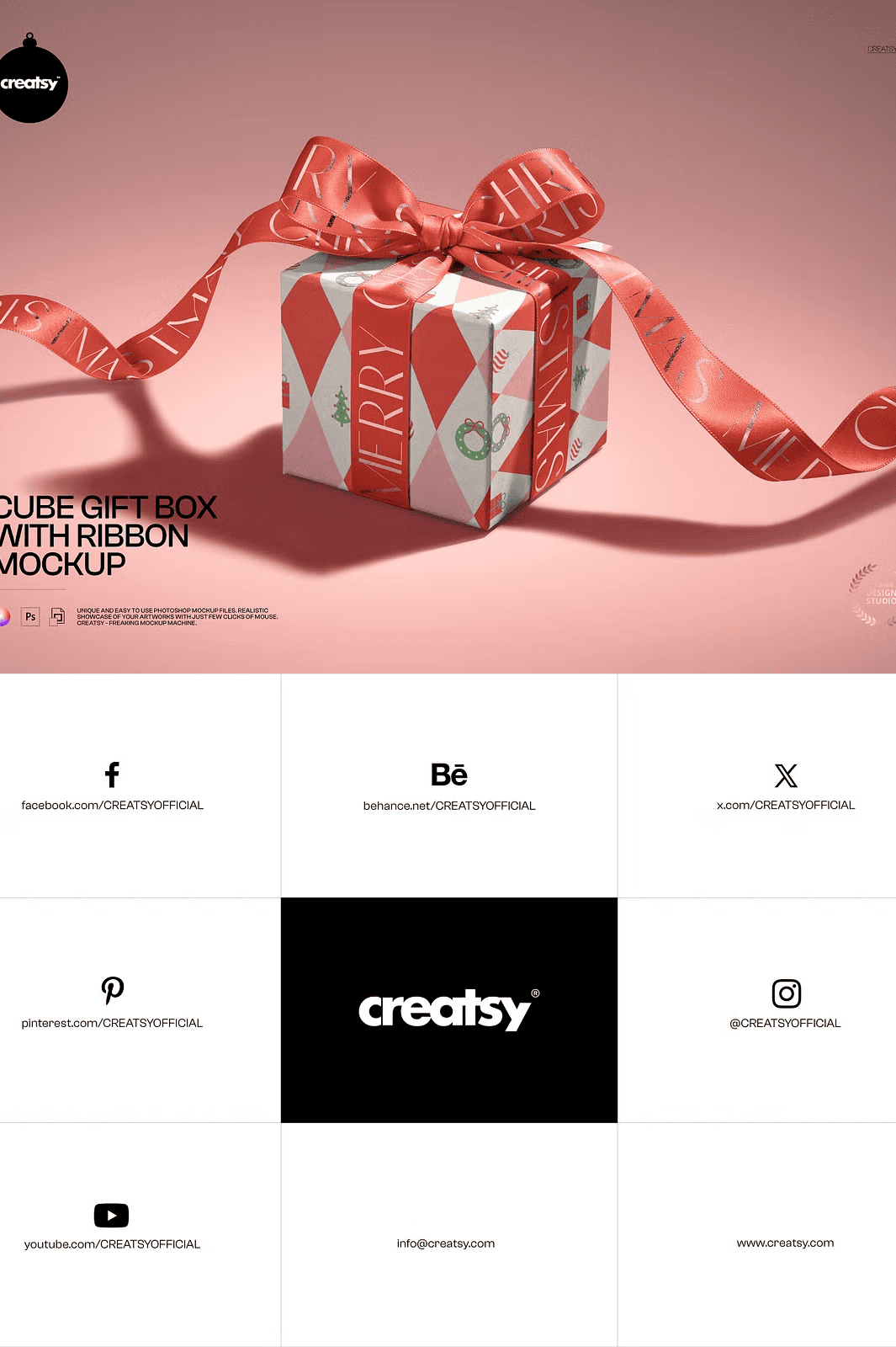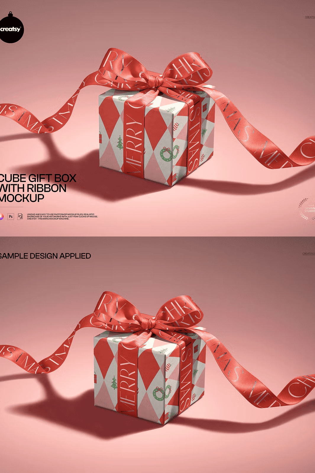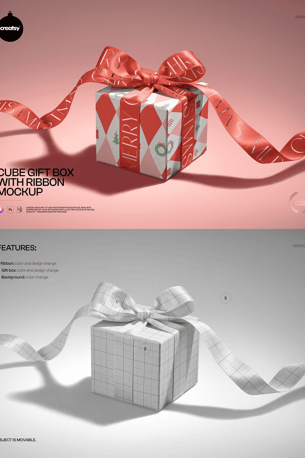 This mockup file is designed to enhance your design presentations without compromising on quality or ease of use. Download the Cube Gift Box with Ribbon Mockup today and create compelling, eye-catching packaging visuals that stand out in any marketplace or portfolio presentation.
