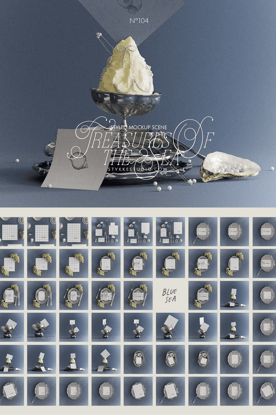 Elevate your creativity with a collection that honors the past while empowering your present. Download the TREASURES OF THE SEA NO.104 BLUE EDT mockup bundle today and bring your vision to life with timeless, refined presentation quality.