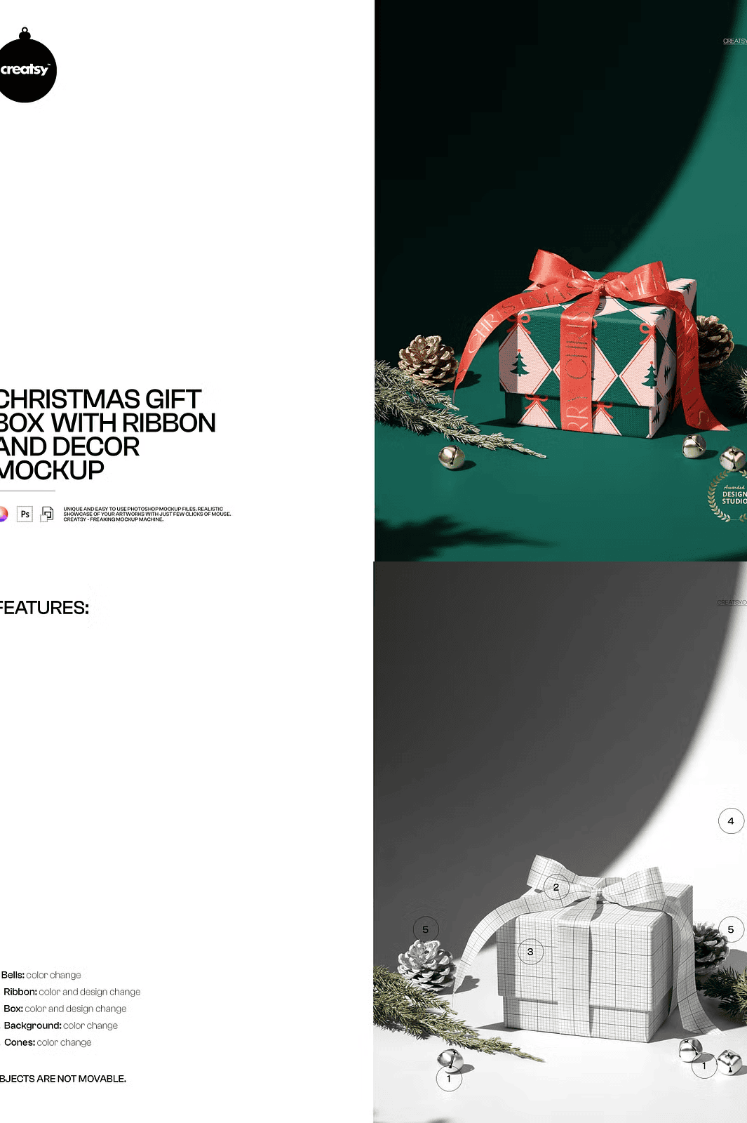 Craft unforgettable holiday visuals with this sophisticated Christmas gift box mockup, complete with luxurious satin ribbons, sparkling ornaments, and finely detailed surface textures. This high-resolution PSD template is engineered for designers who demand realism, precision, and creative freedom. Perfect for showcasing product packaging, launching seasonal promotions, creating e-commerce mockups, or presenting gift line concepts to clients. Designed for use in Adobe Photoshop (minimum CC2020) and fully functional in Photopea—so you can work across devices, from desktops to tablets, without any limitations. Bring your festive designs to life instantly with a professional-grade, ready-to-edit visual foundation.