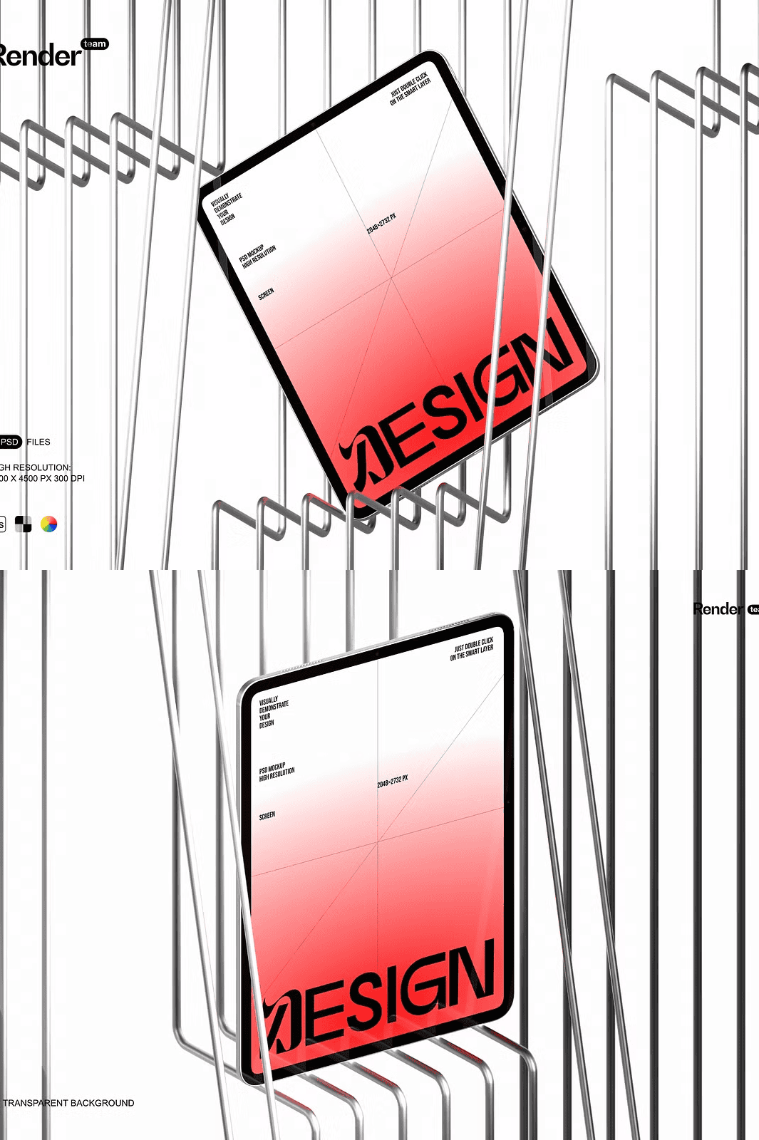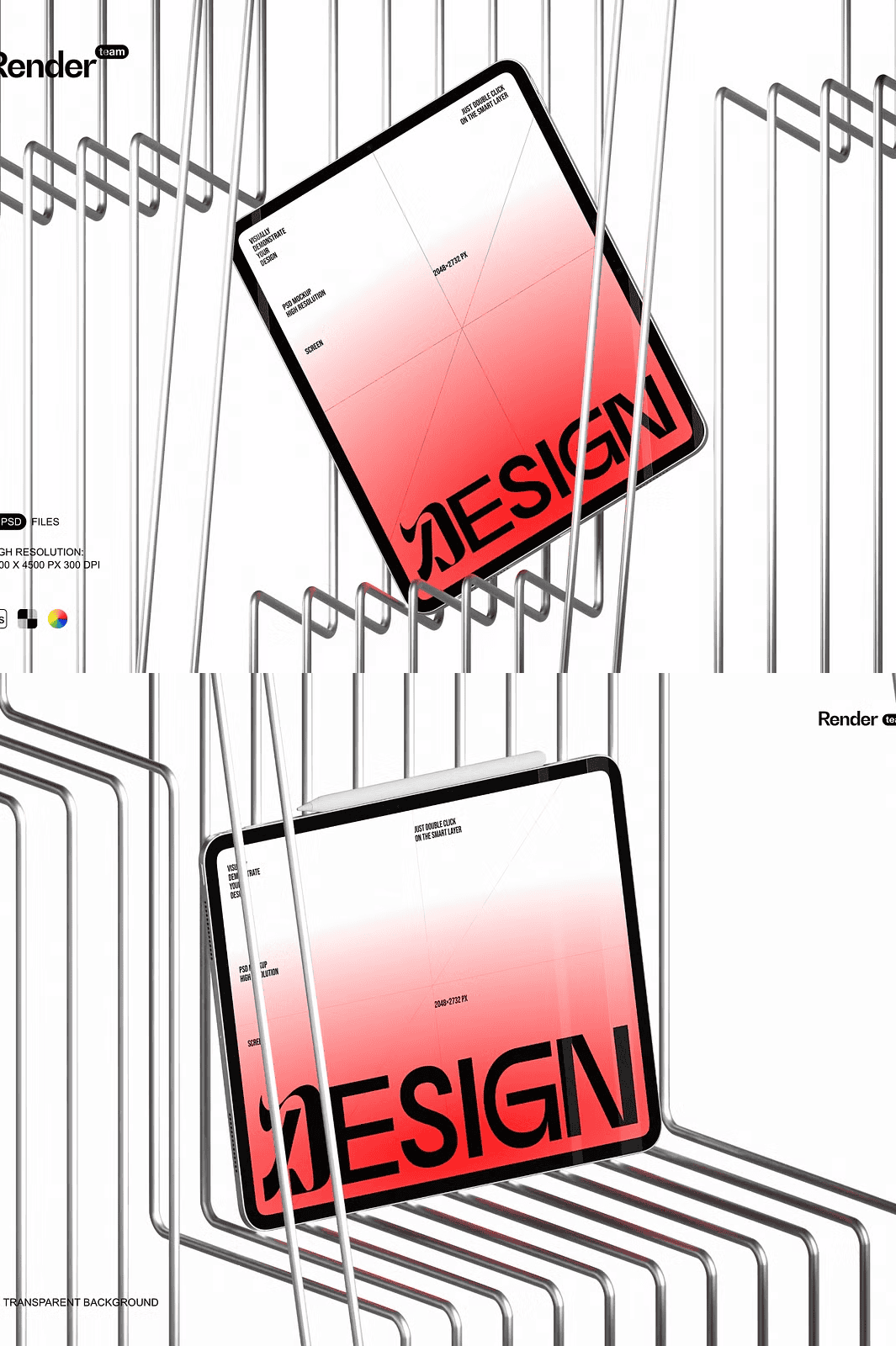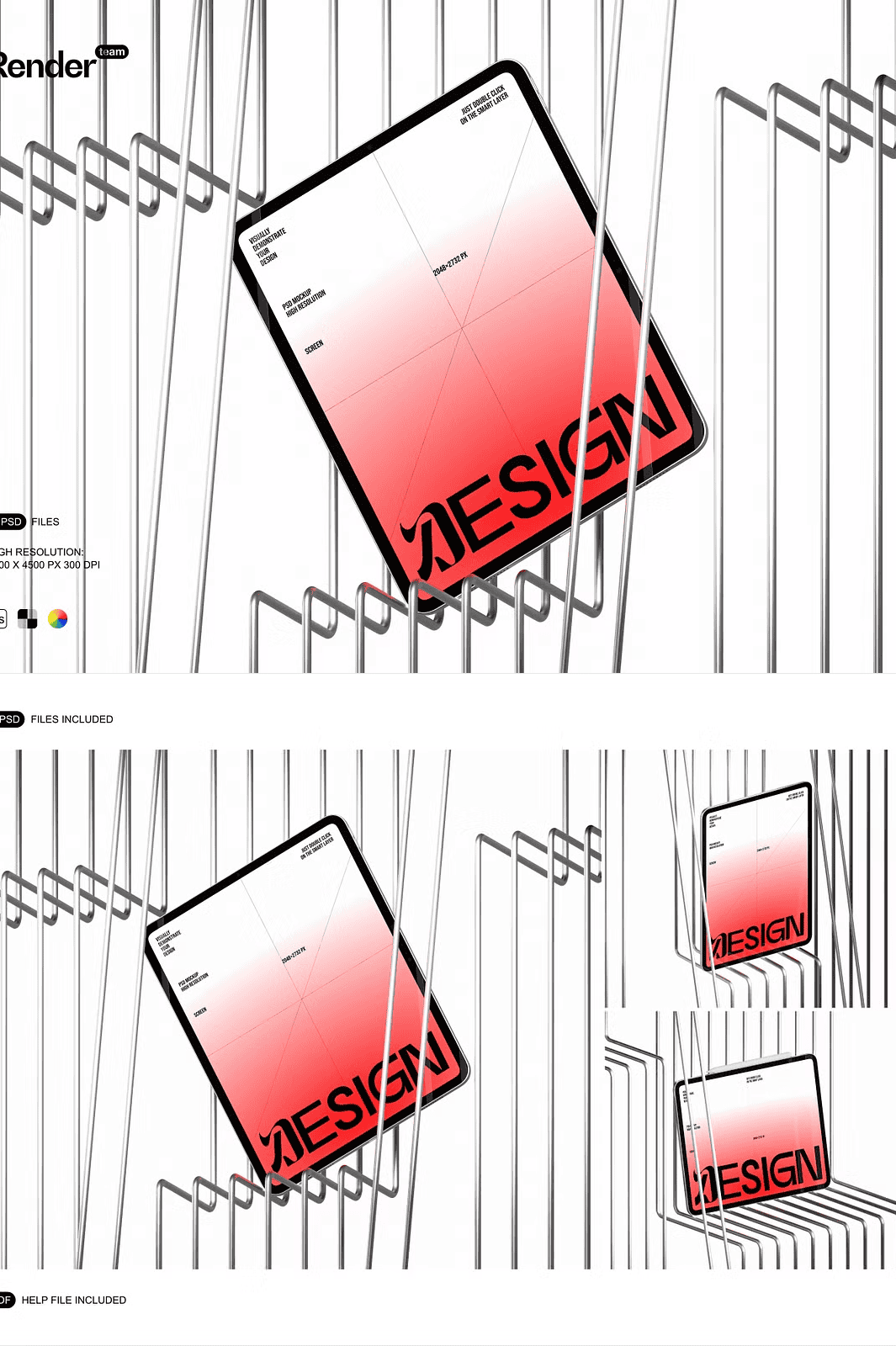 – 3 high-quality, layered PSD mockup files (iPad, iPad Pro, and split-view layout).