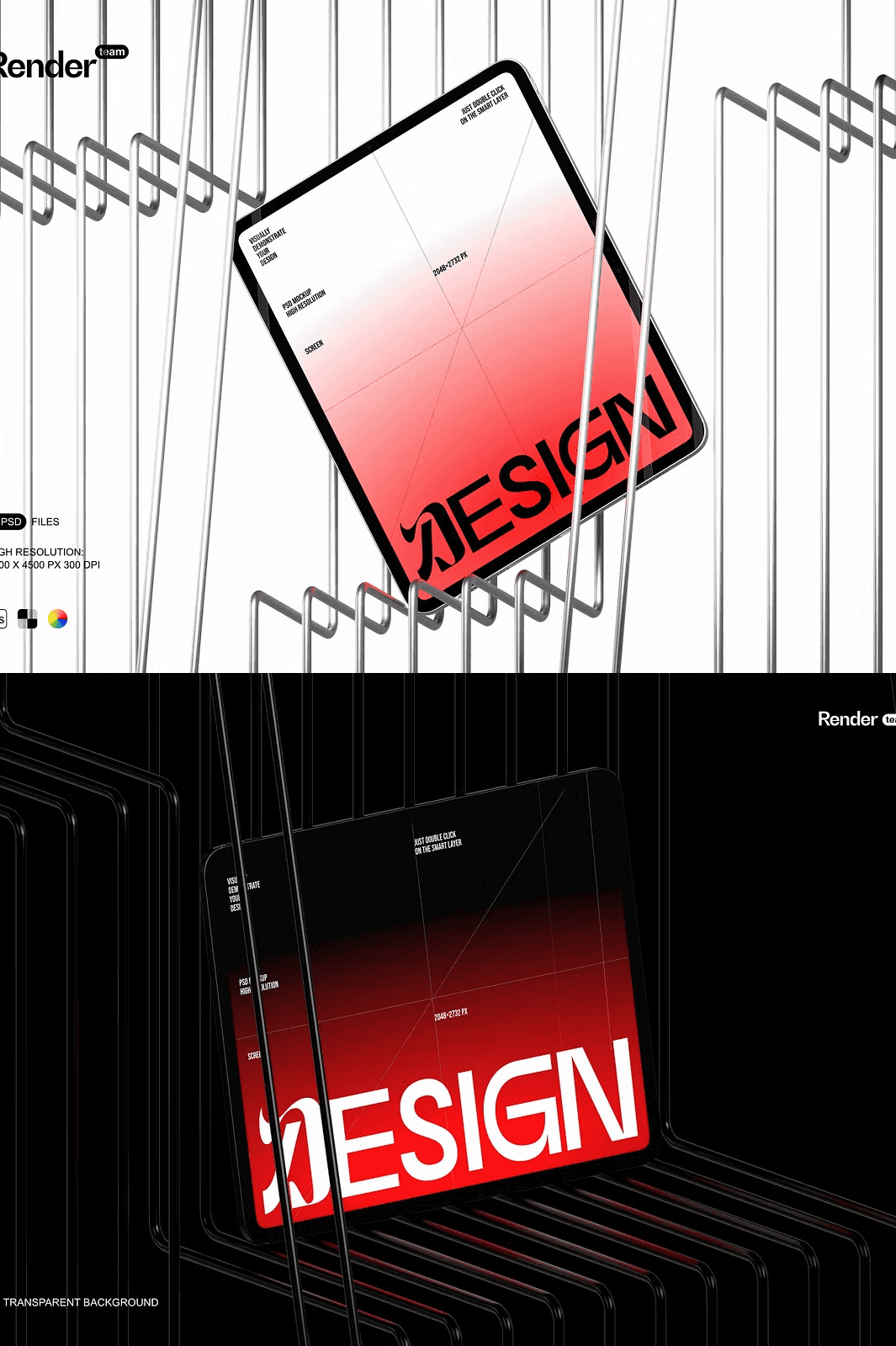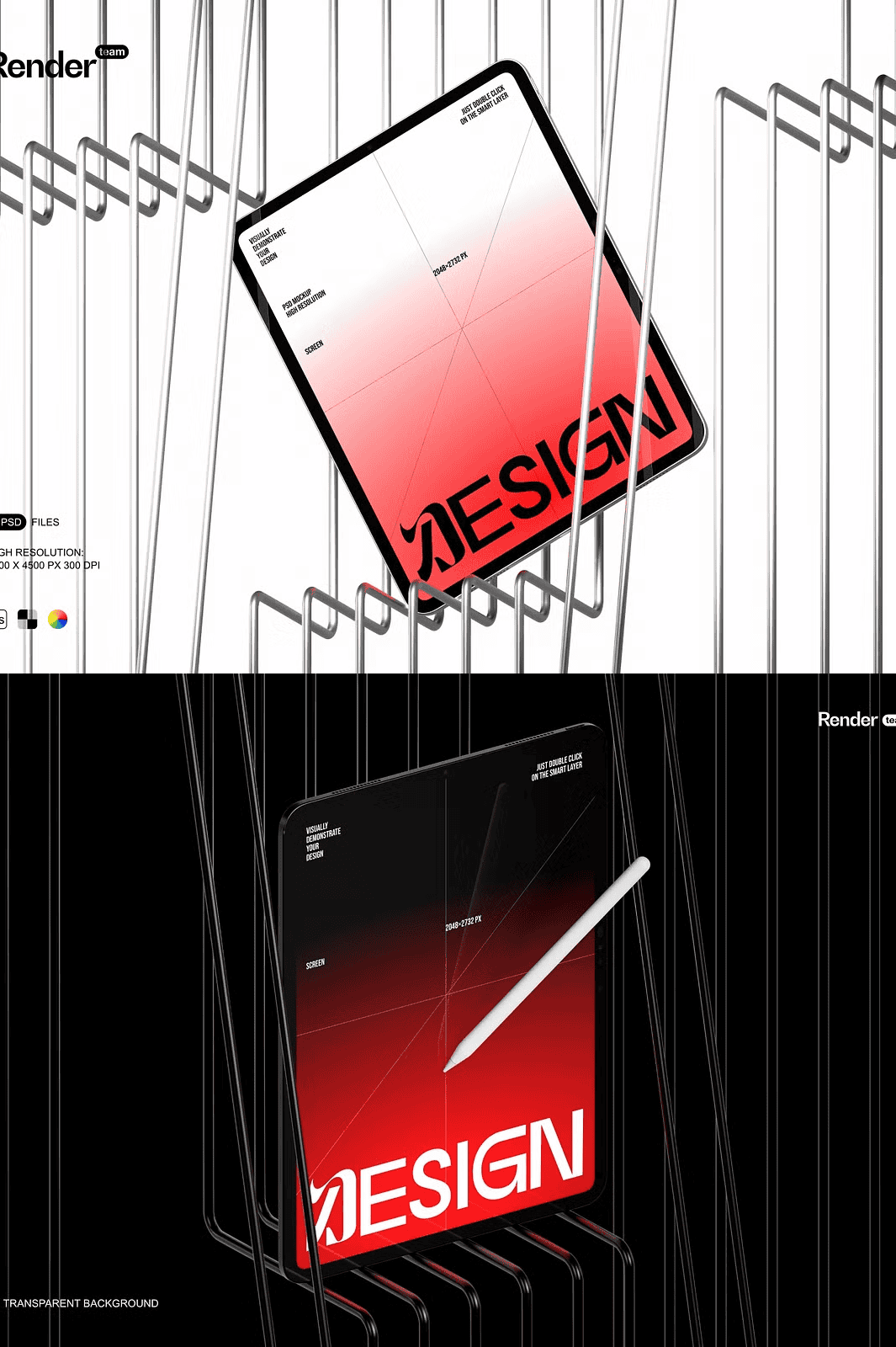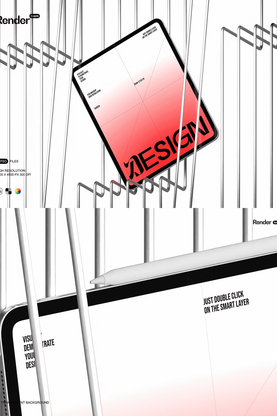 – 3 high-quality, layered PSD mockup files (iPad, iPad Pro, and split-view layout).