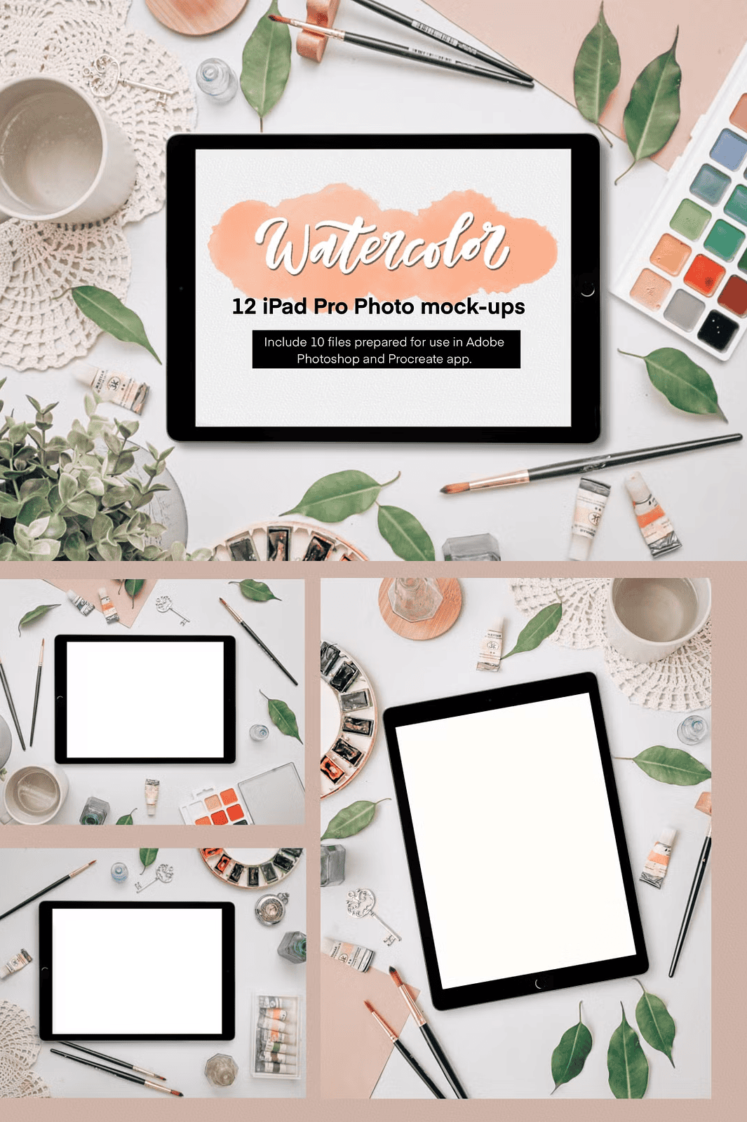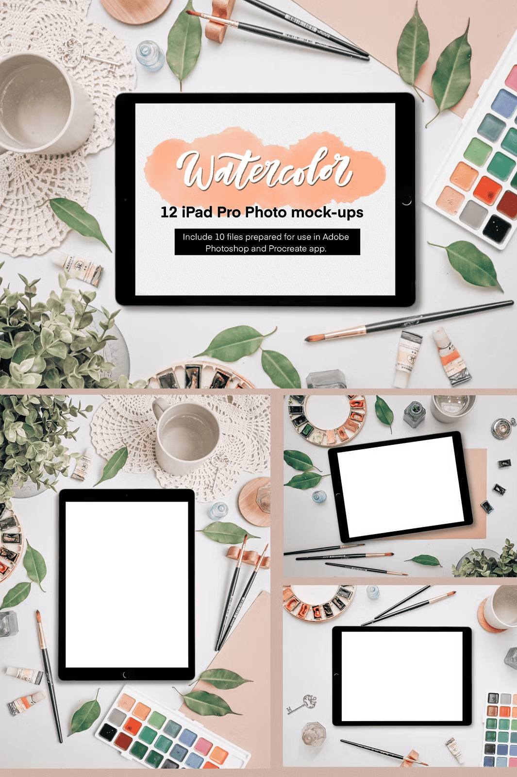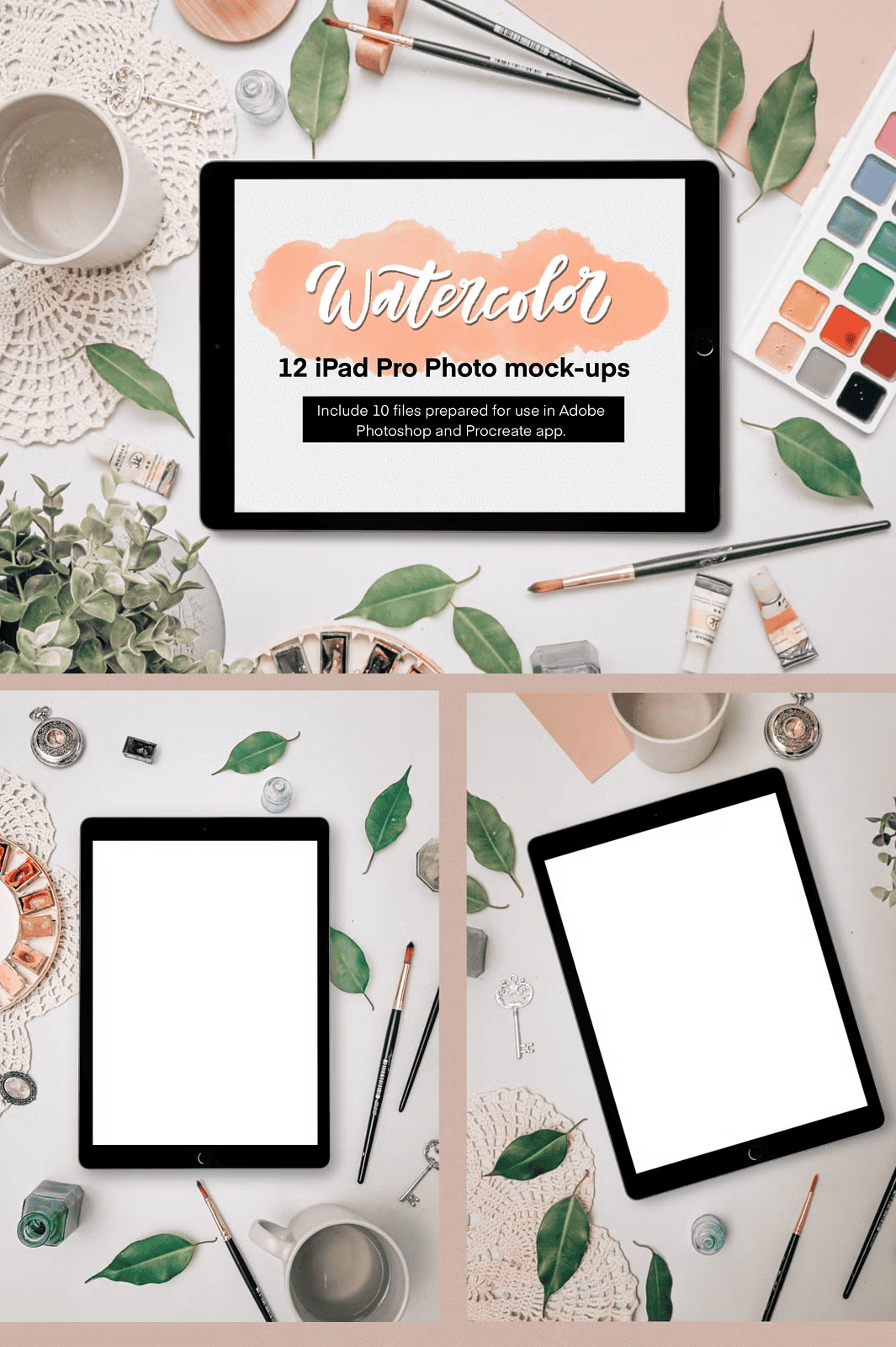 – 12 professionally designed iPad Pro mockup templates (watercolor, landscape, and cityscape themes)