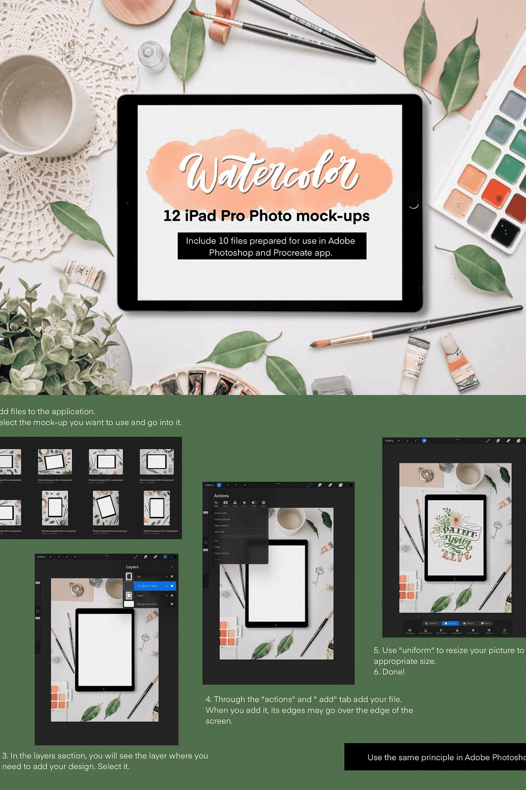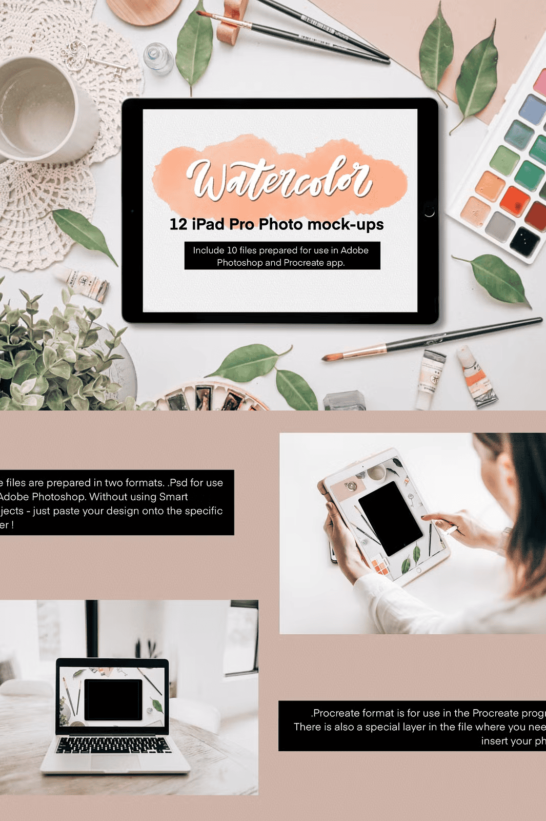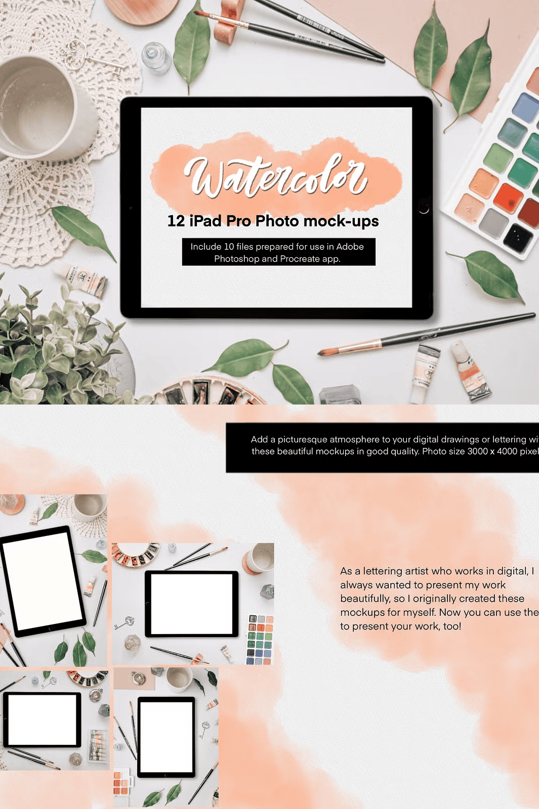 – 12 professionally designed iPad Pro mockup templates (watercolor, landscape, and cityscape themes)