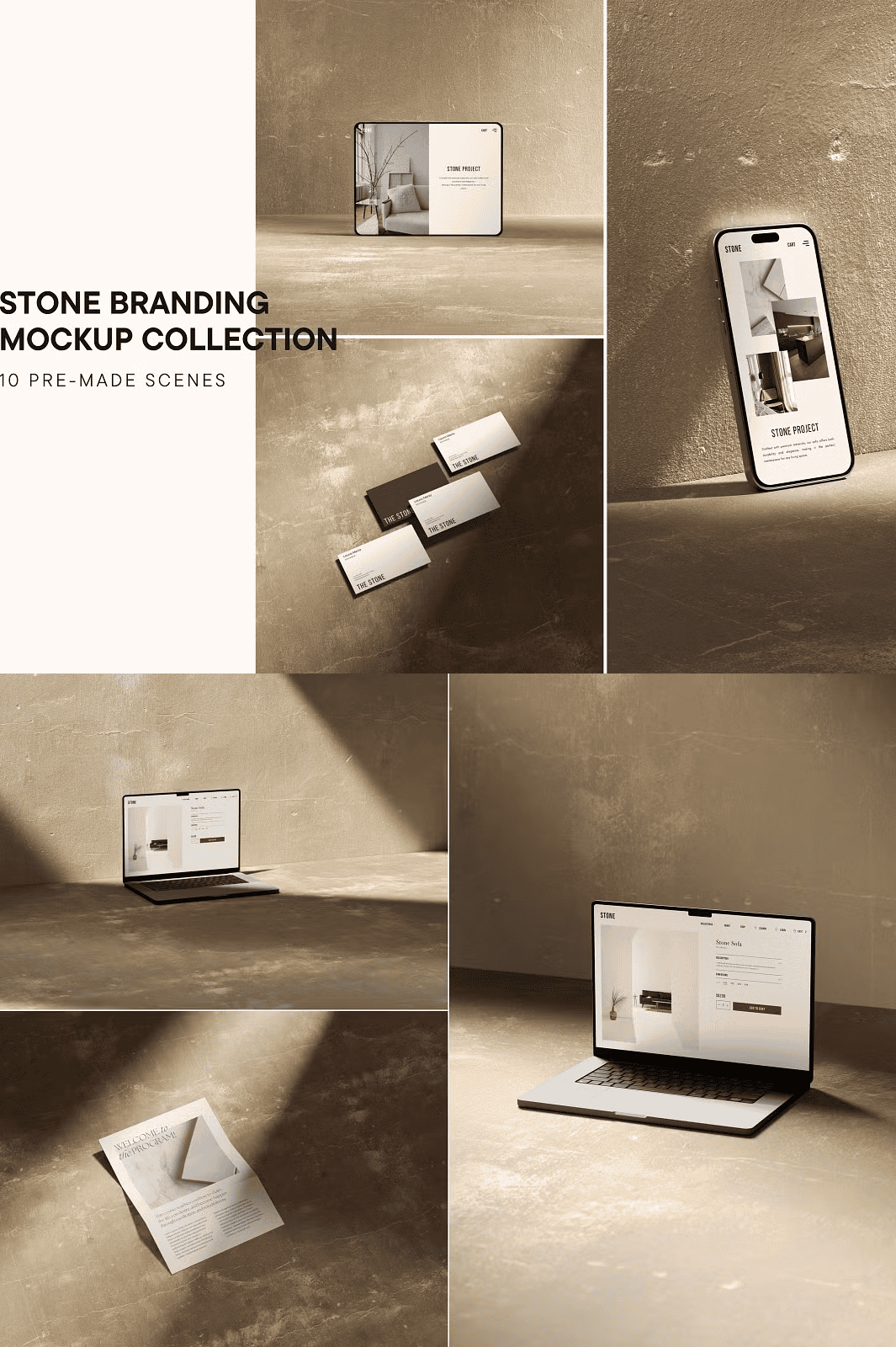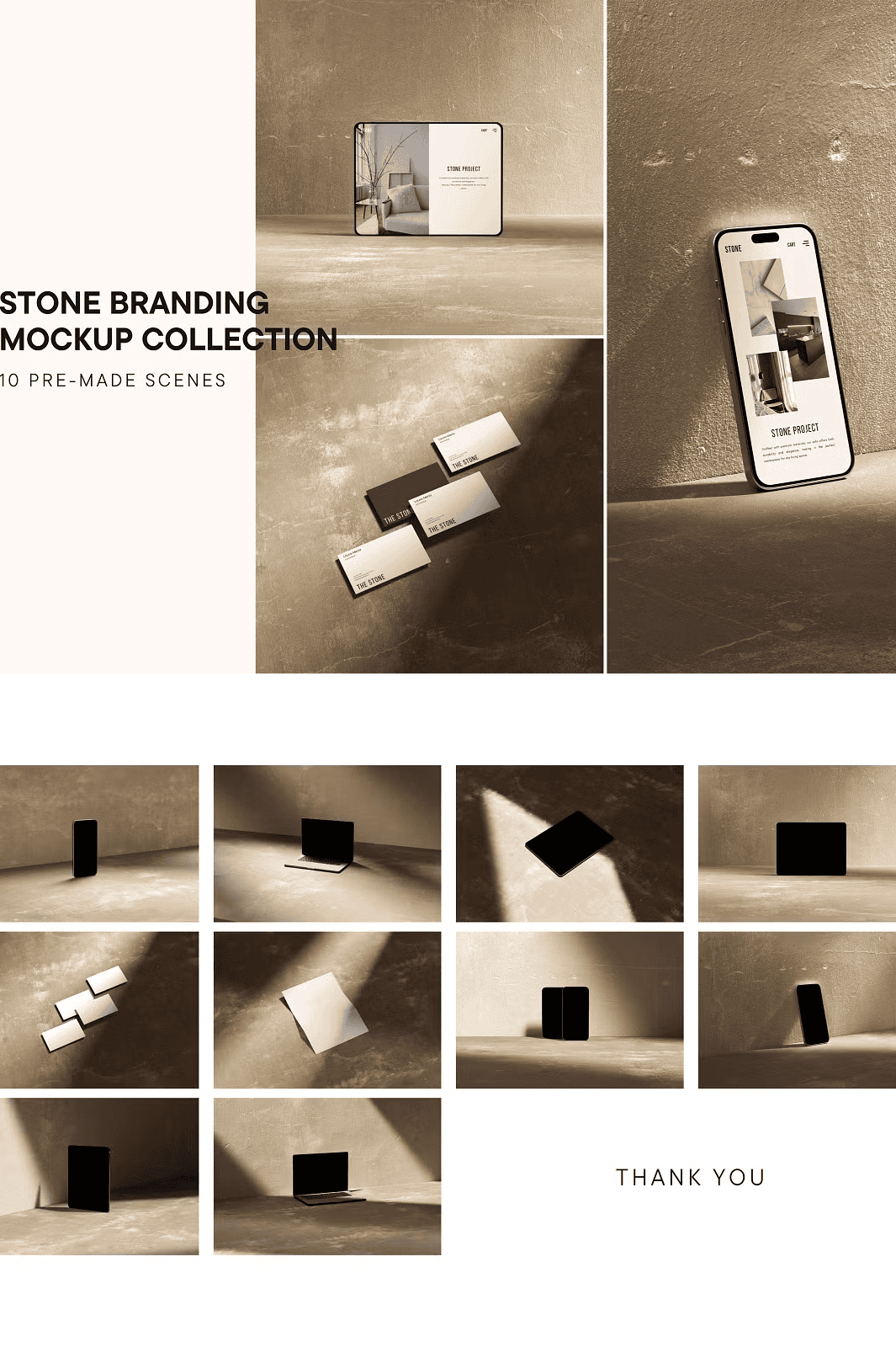 Transform your digital and print branding projects with the Stone Branding Mockup Collection — a premium set of 10 high-resolution, photorealistic PSD scenes designed for modern professionals, creative agencies, and brand developers. This collection combines elegance, realism, and functionality to help you present your work with unmatched confidence. Featuring iconic devices like the MacBook Pro, iPad Pro, and iPhone 15 Pro, alongside industry-standard business cards and A4 paper, each scene delivers a lifestyle-ready visual context that speaks directly to your audience.