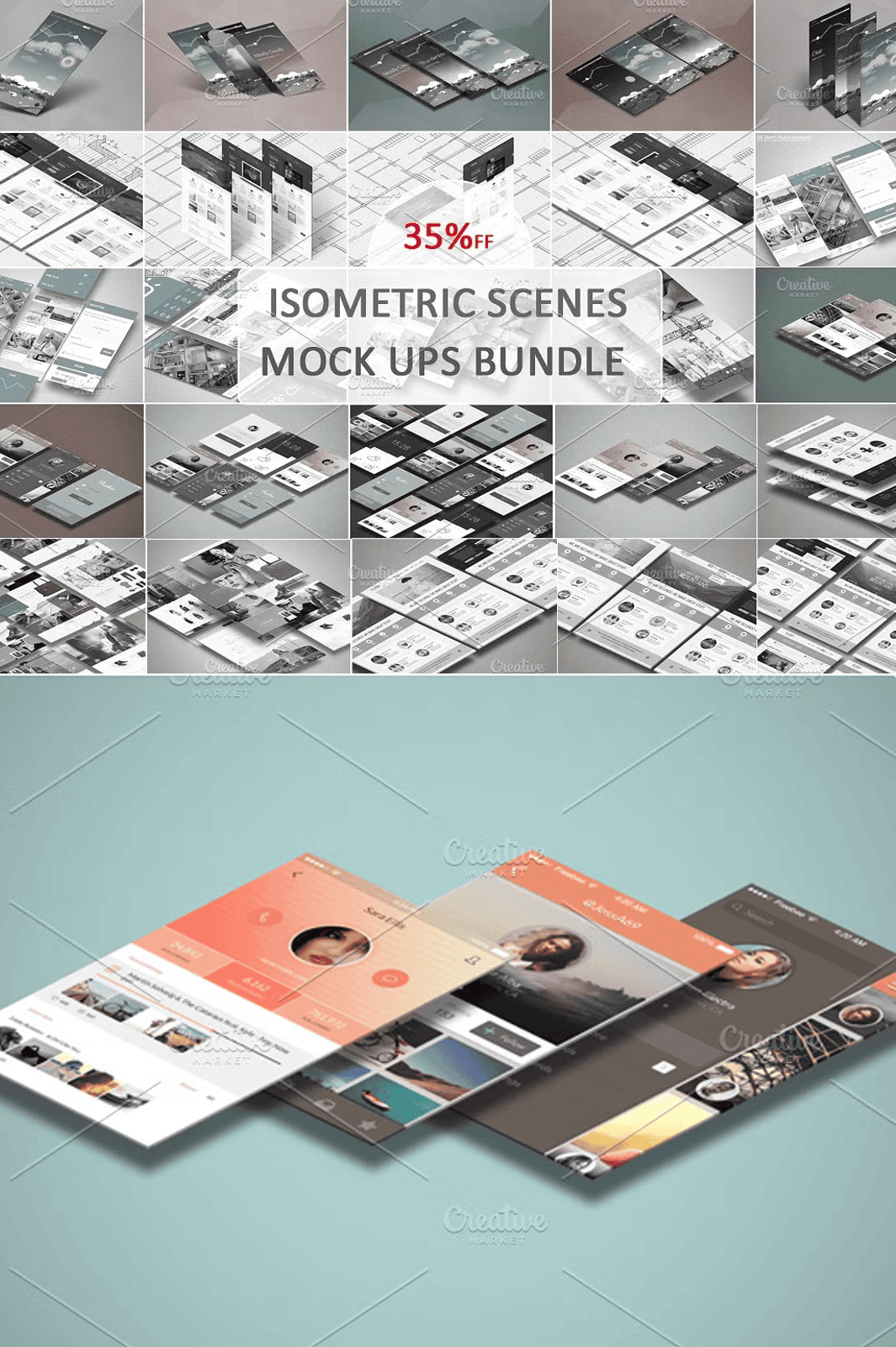 - Mobile Mockups – Isometric Scenes: Showcase app interfaces in engaging, modern environments that reflect real-world usage.