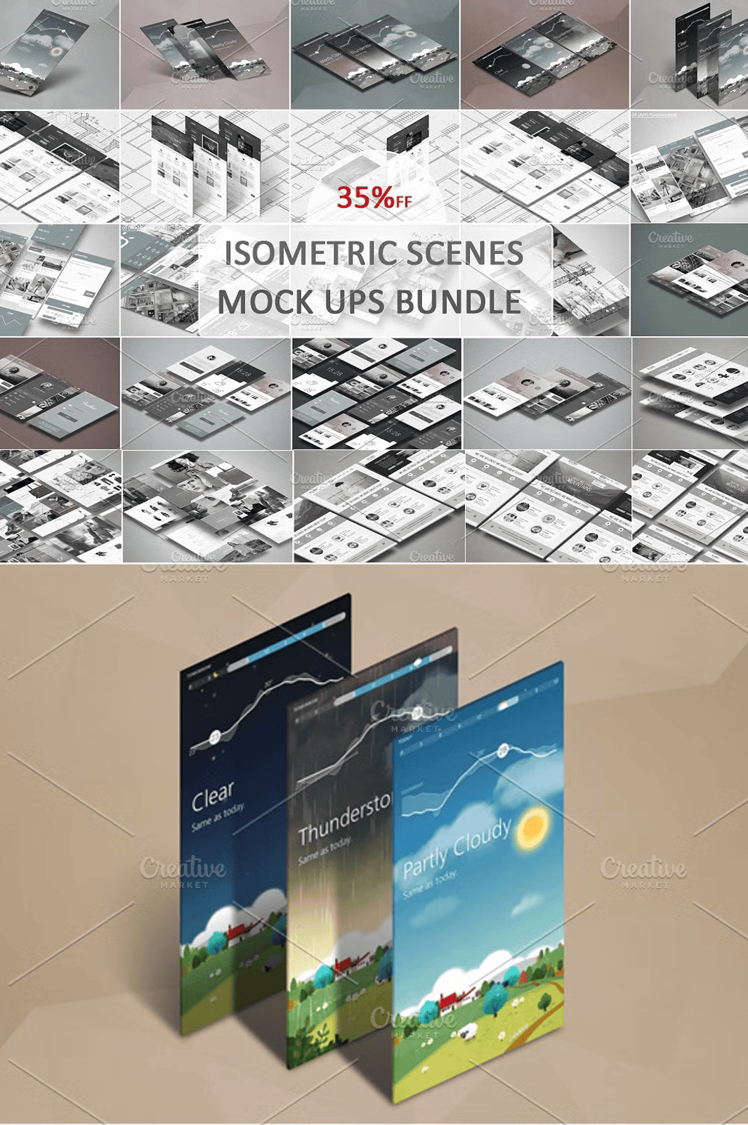 - App Mockup – Isometric Scenes: Highlight mobile and tablet apps using dynamic 3D angles and professional staging.