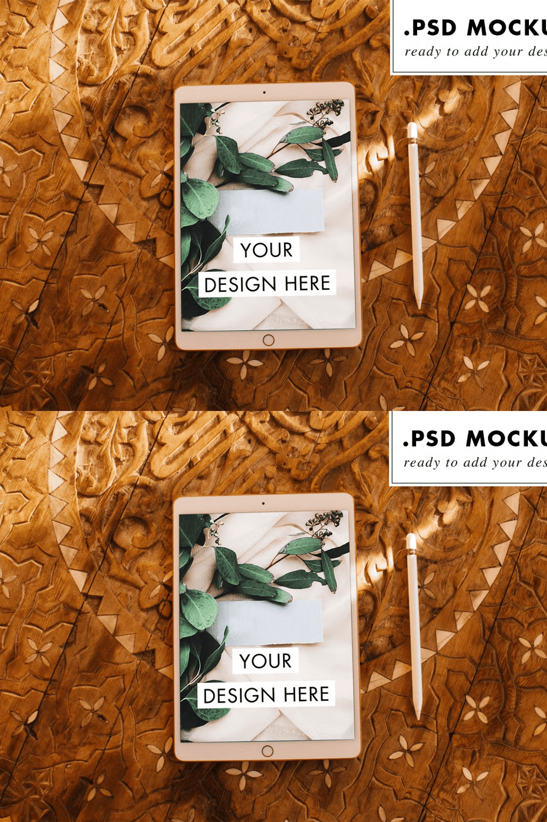 • **Shadow opacity and softness** – Tailor how deeply the iPad appears embedded in the wooden surface.